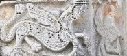 Sulla chiave d'arco e sui conci d'imposta del portale medievale in pietra visibile nel cimitero